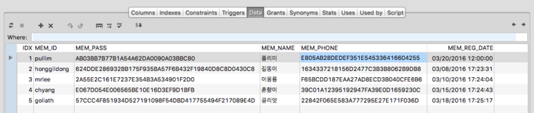 위와 같은 구조의 PULLIM_ORA_TEST라는 테이블이 있다.