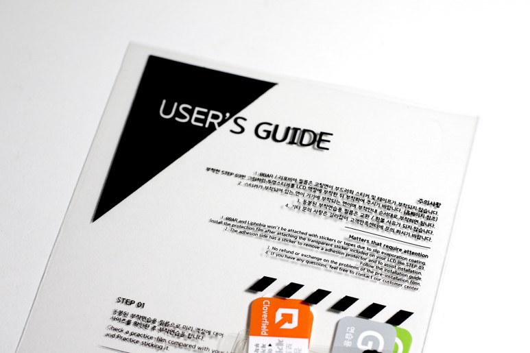다른 분들에게 별것 아닐지도 모르겠지만 제게 있어서 연습용 보호필름의 제공은 제품 부착에 앞서 맘을 한결 편하게 해 주는 것 같습니다. (부착에 실패하면 OTL이잖아요… ㅠ)