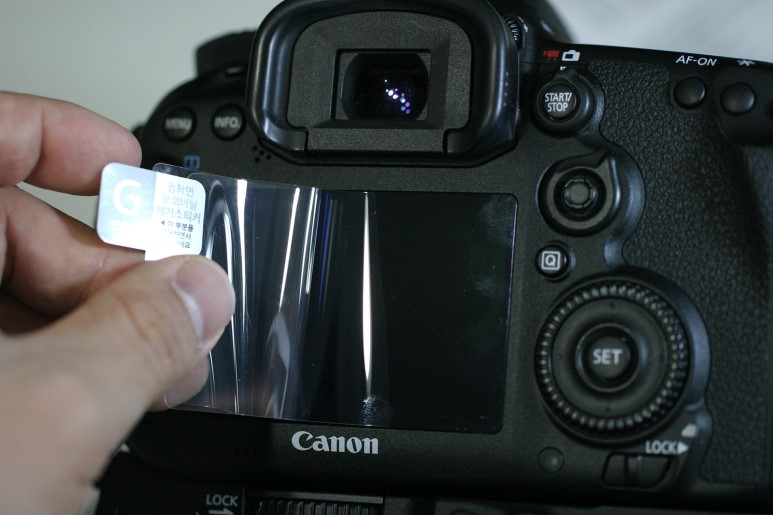 카메라 상단의 정보표시창에 붙일 보호필름 2매, 메인 액정에 붙일 보호필름 2매 그리고 친.절.하.게.도 연습용으로 사용할 보호필름이 1매 동봉 되어 있습니다.